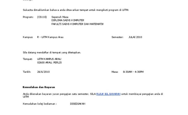 Semakan keputusan permohonan ke uitm. Permohonan surat tawaran uitm 2019, permohonan surat tawaran uitm hilang,. Surat tawaran uitm 2019 my story could be your story. (1) kategori lepasan diploma uitm dan penerapan semester akhir diploma uitm. Keputusan dan surat tawaran permohonan ke program sarjana muda bagi lepasan stpm, asasi, matrikulasi kpm, stam, diploma ipt lain dan penerapan asasi . Perhatian calon lepasan spm 2020 yang telah mohon kemasukan ke uitm! Surat tawaran uitm 2019 my story could be your story. 37551163 surat tawaran uitm surat bahagian pengambilan pelajar.